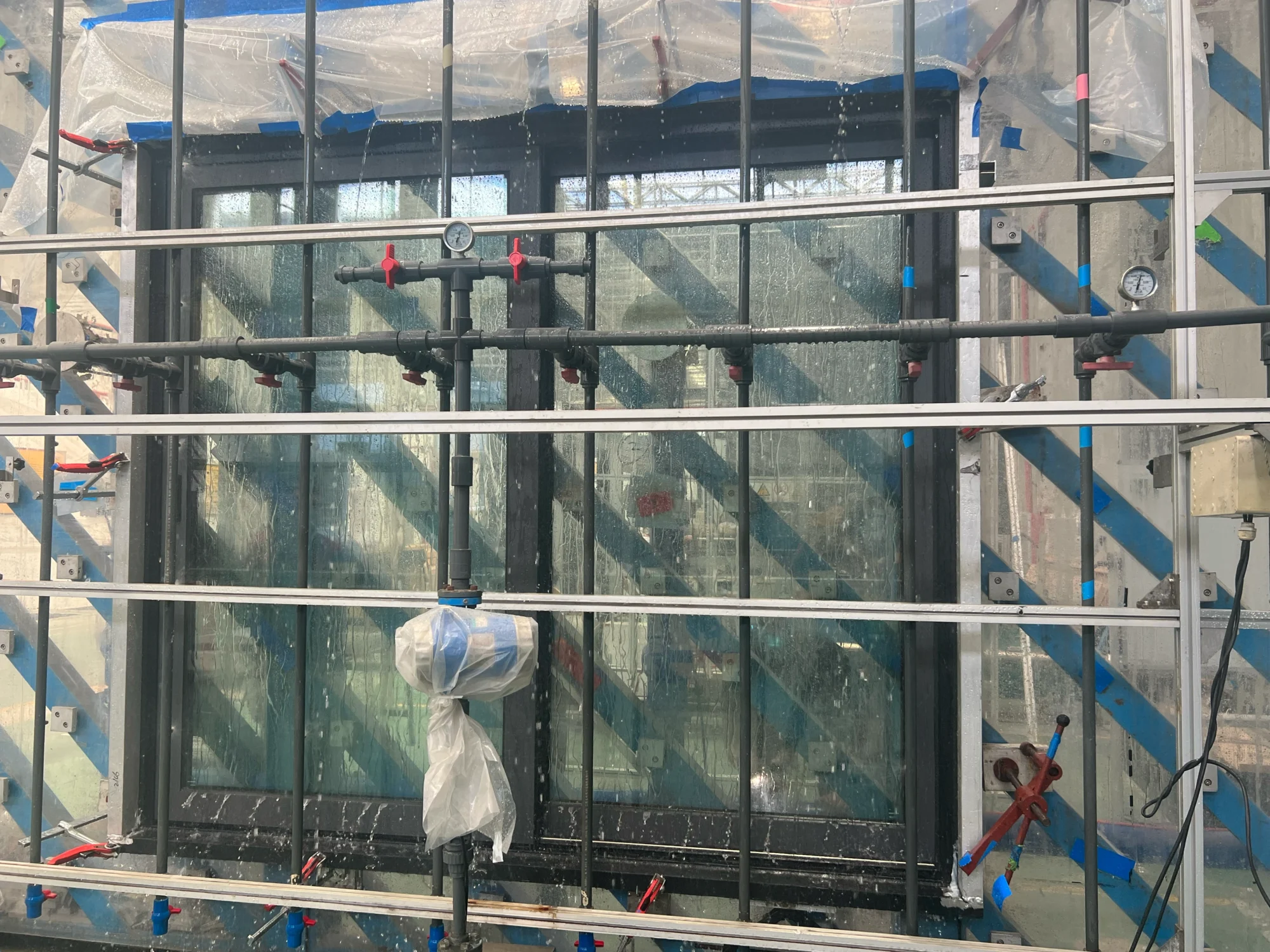 Through pressurized water infiltration tests that simulate heavy rain and wind conditions.